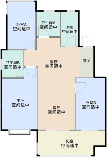 各个空间户型方正,方便室内家具布置;整个空间全明通透,采光良好,同时利于居住... 展开